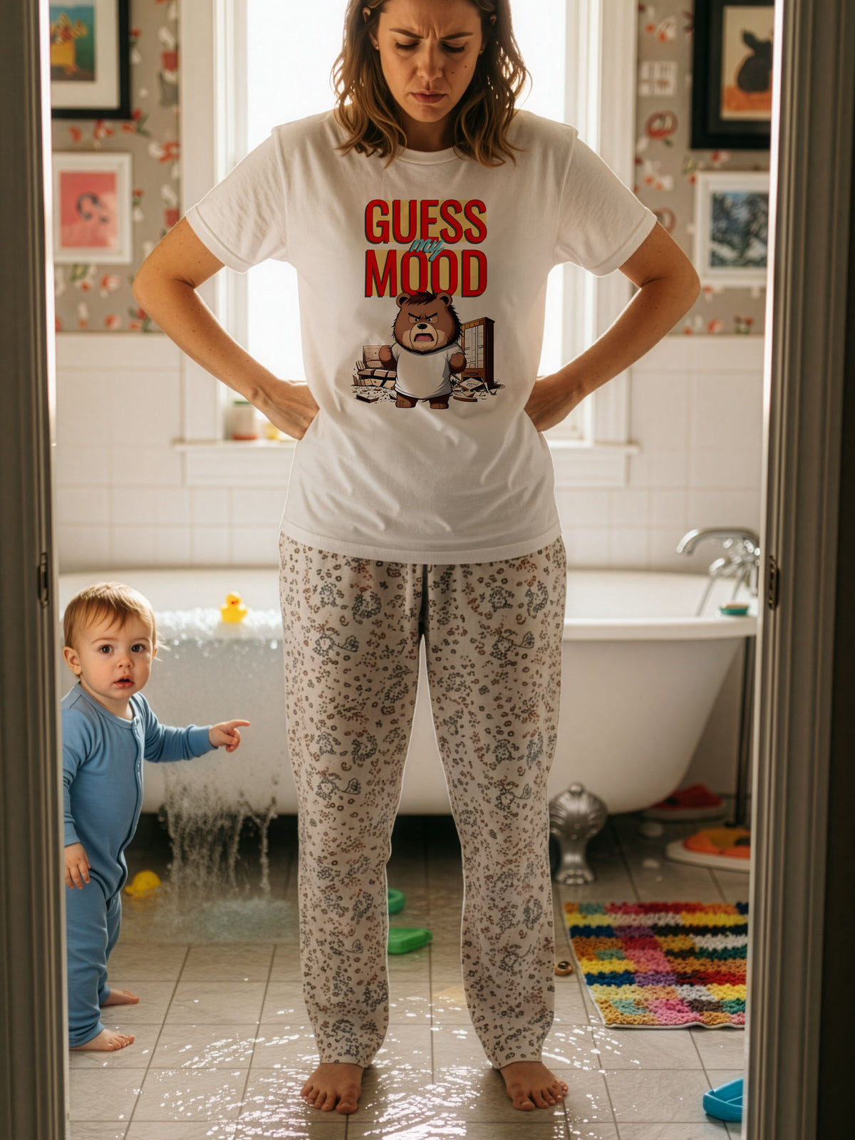 Are you tired of daily emotional roulette? Do your feelings shift like the weather in spring? Well, we've got the perfect tee for you! Introducing the "Guess My Mood" tee, featuring a graphic that artfully captures life's unpredictability.