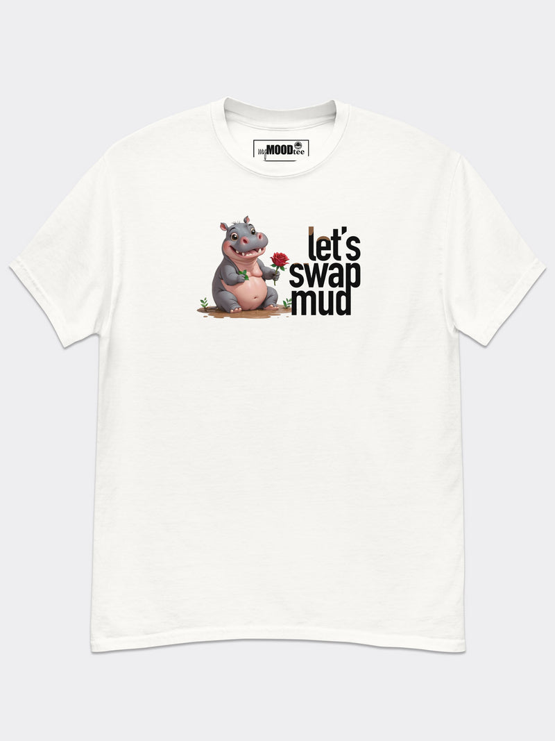 Let's Swap Mud – Graphic Cotton Tee - Because Nothing Says Romance Like a Hippo in a Mud Bath