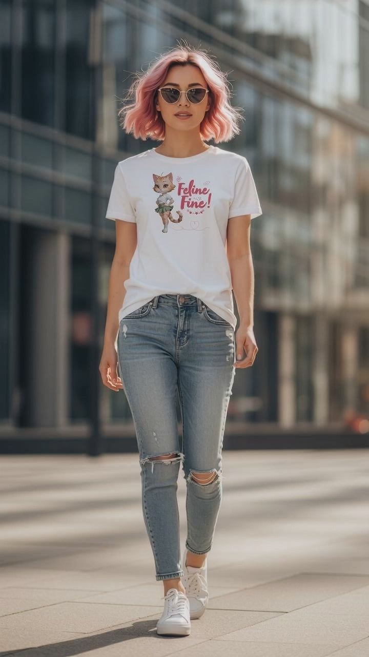So ditch the boring basics and embrace your inner feline fine-ness. The "Feline Fine" tee is the ultimate conversation starter (a purr-fect way to break the ice, wink wink).