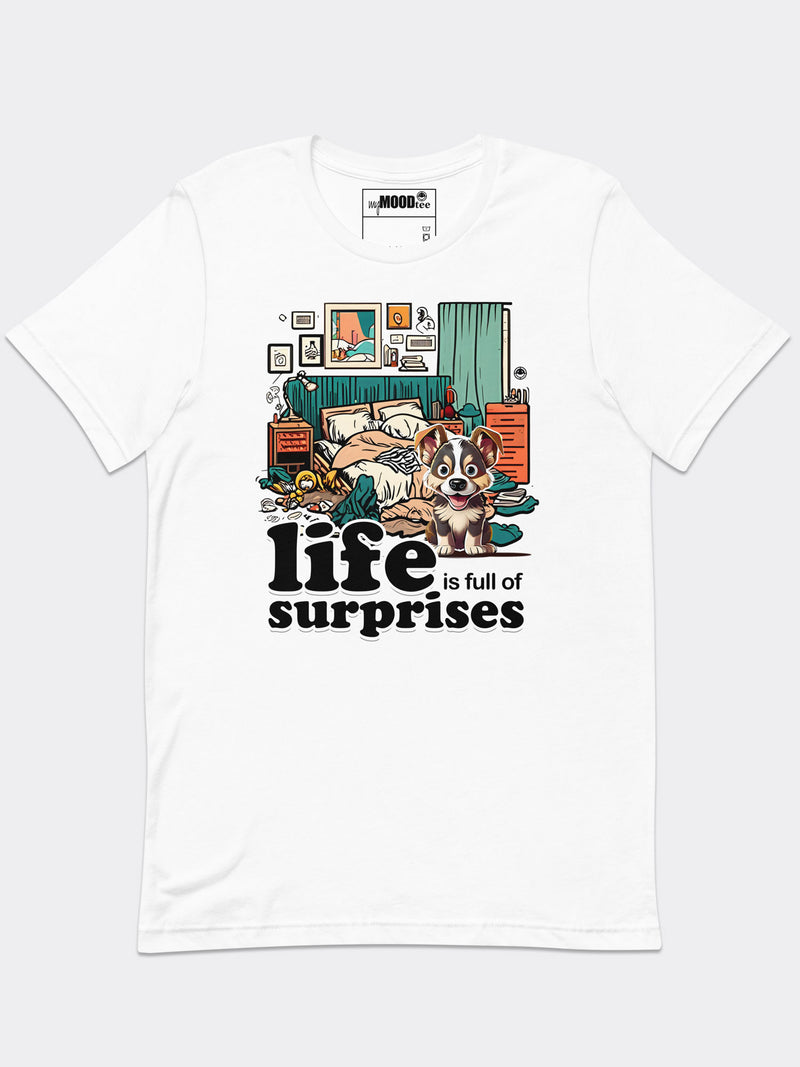Life is Full of Surprises - Premium Graphic Tee - Because Apparently, the Universe Thinks You're Hilarious