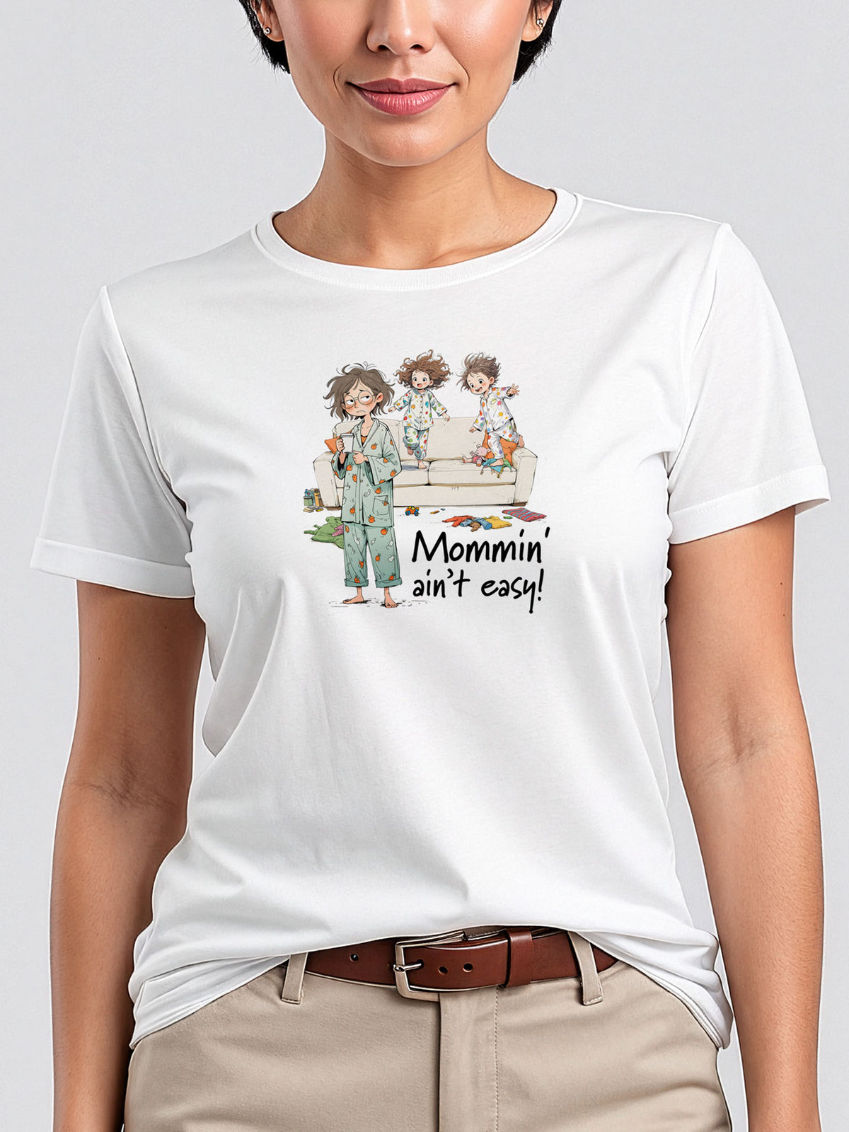 Mommin' Ain’t Easy – Funny Graphic Cotton Tee for Tired Moms & Everyday Chaos Wranglers