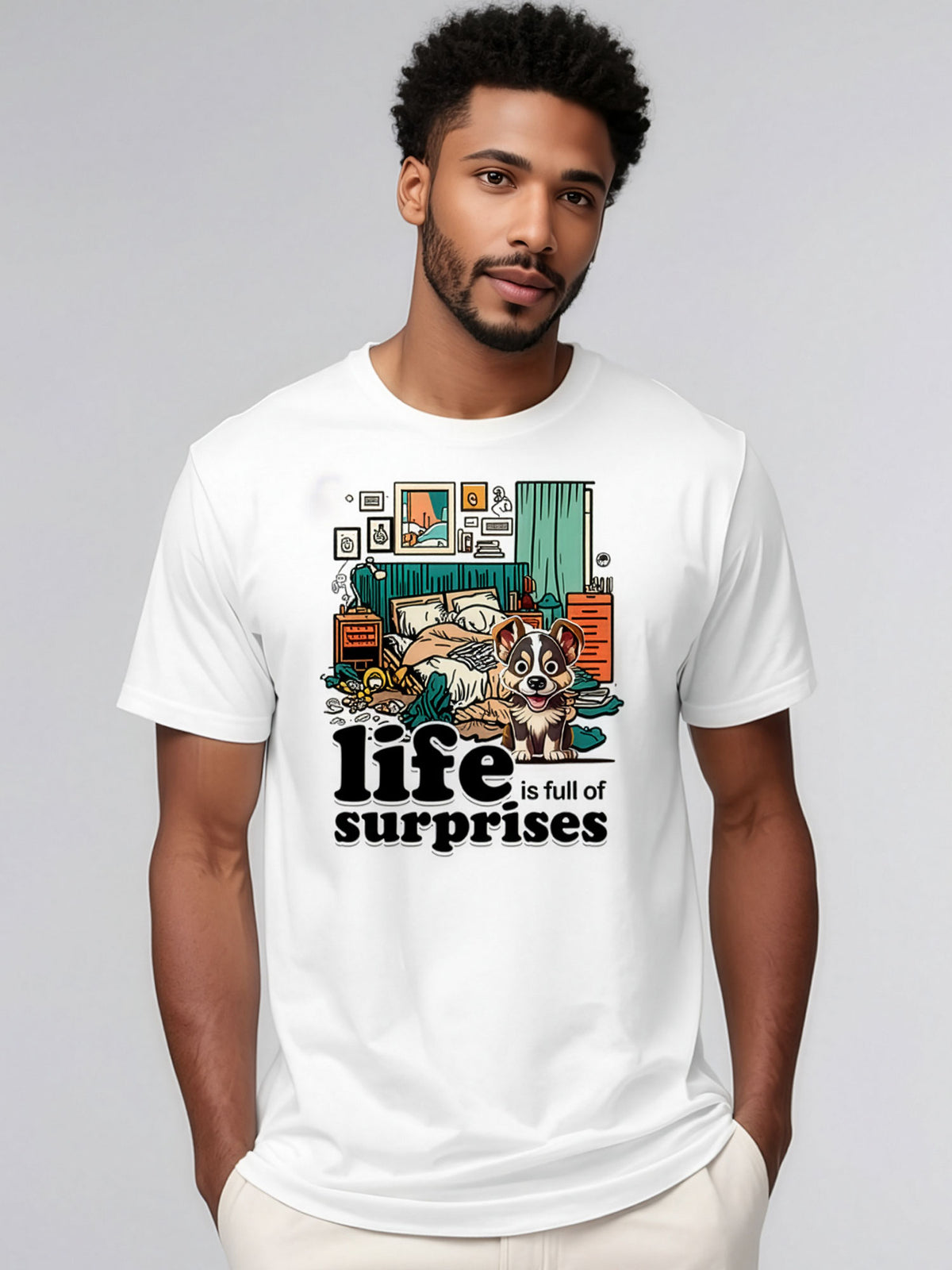 Life is Full of Surprises - Premium Graphic Tee - Because Apparently, the Universe Thinks You're Hilarious